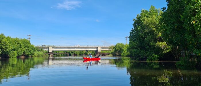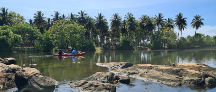This stage starts from the Kayankerni Bridge and goes all the way up to Vattawan Beach in Vandalous Bay. At the beginning of the trail, visitors get an opportunity to paddle through a beautiful stretch of mangroves on both sides, dominated by Rhizophora spp. and Avicennia spp. On the left side, as visitors paddle in the southeast direction of this section, the water is very shallow and sandy, so it is advised to stay on the right side to paddle smoothly.