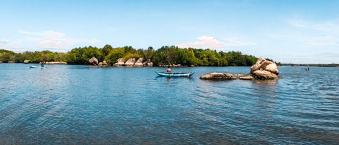 Because boat and fishing activities are consistently high, it is possible to observe many fish production sites from the river, as well as boat wrecks. Visitors may also find many boats anchored and moored along the banks. Alongside the riverbank, the vegetation consists of a mixture of terrestrial trees and mangroves. The combination of vegetation, boat parking, and fishing industry increases the difficulty of accessing the banks of the river, so visitors are advised to rest on their kayaks and avoid embarking to shore along this route.